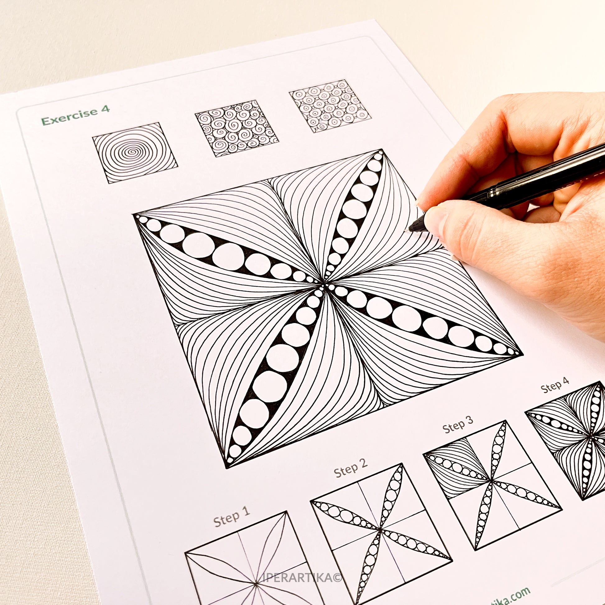 You simply follow the patterns and let your hand move — which helps your mind slow down naturally.